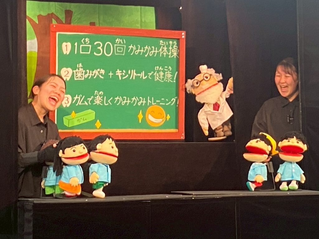 株式会社ロッテ様と本学のコラボ企画として、子ども教育学部の児童文化部「ぱれっと」による噛むことPR人形劇『しあわせ あは歯!』を開発・上演いたしました。