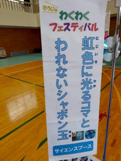 10月19日(日),横山教授と本学部有志学生14名(1年,2年,4年)が,そうじゃわくわくフェスティバル2025へ参加し,「割れないシャボン玉と光るコマ」のブースを運営しました。たくさんの参加者があり,盛り上がりました。