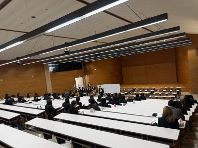 子ども教育学部でも,大勢の新入生を迎えることができました。写真は,入学式の前後に学生と教職員が控室へ集っている様子です。本日や明日以降のオリエンテーションに関する連絡をしたり,教員1人1人が自己紹介をしたりしました。