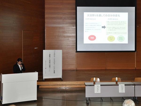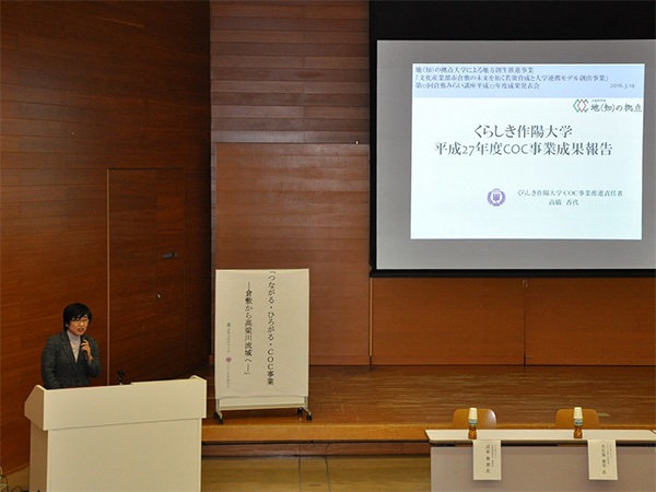 今回は、「つながる・ひろがる・COC事業――倉敷から高梁川流域へ――」をテーマに、2大学による今年度の成果発表(在学生・卒業生の発表も含む)、そして、両大学のCOC事業にご協力いただいている4名のシンポジストの方々をお招きしてシンポジウムを開催しました。