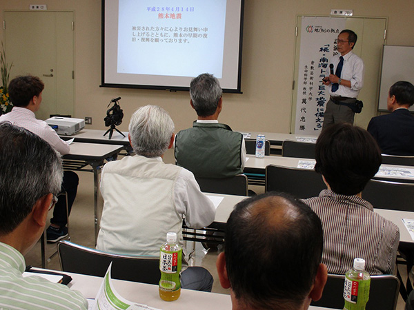 今回は、倉敷芸術科学大学 生命科学科教授 萬代忠勝先生による「続・南海トラフ巨大地震に備える」と題した講演でした。
