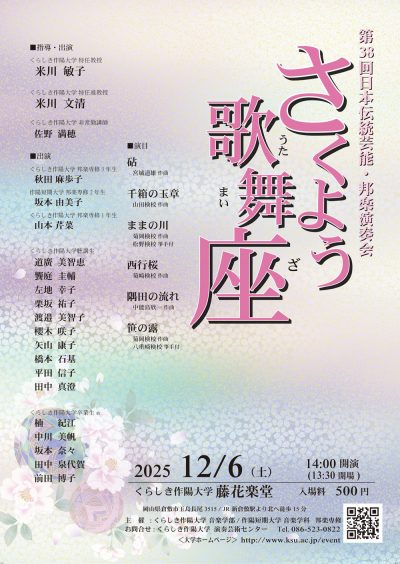 | 主催 | くらしき作陽大学 音楽学部・作陽短期大学 音楽学科 邦楽専修 |