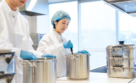 小学校・中学校・共同調理場における給食管理を体験する実習です。食事管理・生産管理・衛生管理などの技術を修得。ほかにも、高齢者福祉施設での給食管理を学びます。