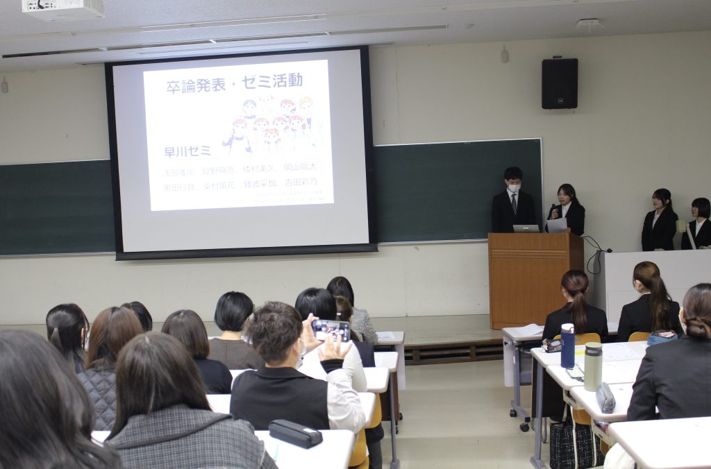 本発表会は、各ゼミが日頃それぞれの研究テーマに基づいて行ってきた活動や調査の成果を発表するとともに、他ゼミの研究内容を共有し、相互に学び合うことを目的として開催されました。当日の司会進行をはじめとする運営は、学生スタッフが担当しました。