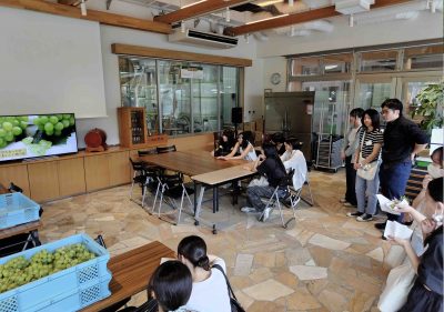 さらに、高梁地区に自生する野生種ブドウ(シラガブドウ)とマスカット・オブ・アレキサンドリアを掛け合わせて誕生した新品種「マスカット・シラガイ」を使ったスイーツ開発について、学生たちがアイデアを出し合う場面も見られ、創造力あふれる学びの時間となりました。