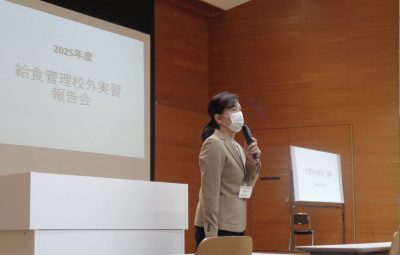12月3日(水)、食マネジメント学科3年生による給食管理校外実習報告会を開催しました。