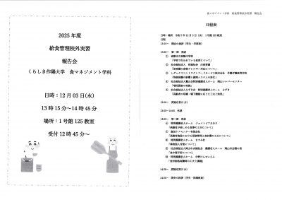 2025.12.10 食マネジメント学科 給食管理校外実習報告会を開催しました(2025年12月3日)
