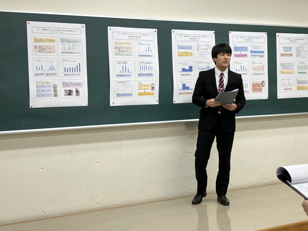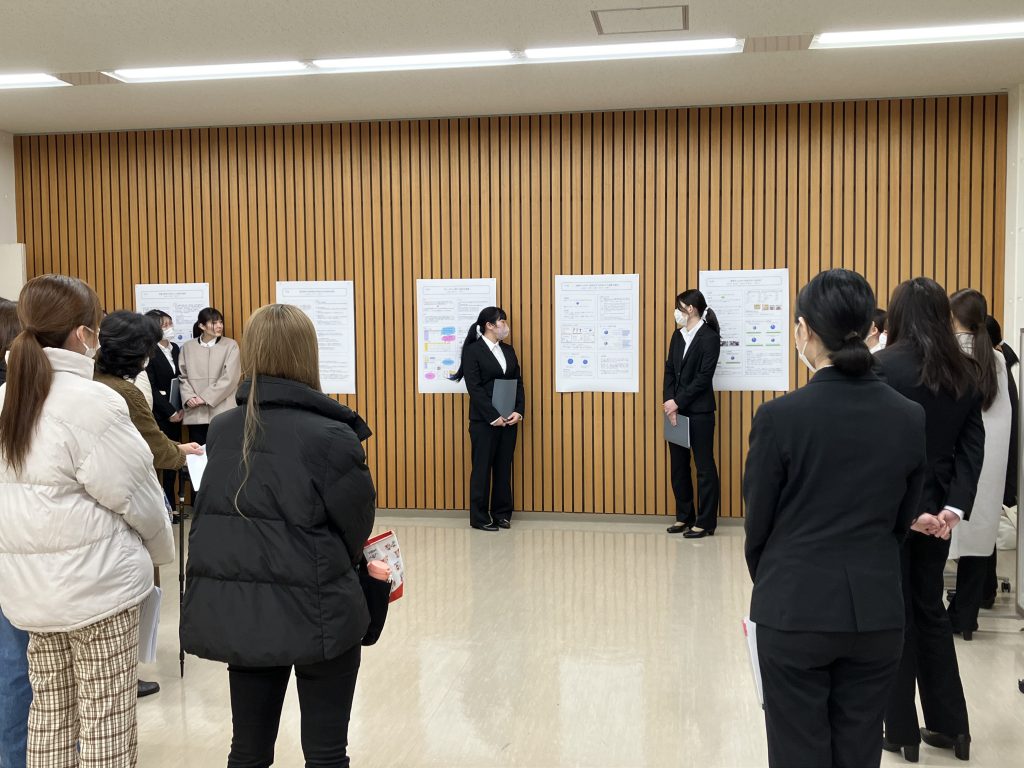 本学聖徳殿、5号館において、食文化学部 現代食文化学科4年生による「令和5年度卒業研究発表会」を行いました。4年間を通して学んできた栄養士分野に関与するものや食育、家庭科教育、健康増進とスポーツ栄養、商品開発と流通、フードコーディネートと食環境の5領域に関するテーマについてゼミごとに発表を行いました。3年生も参加して、次年度のゼミを選択する参考にしていました。