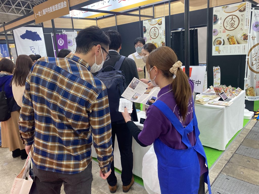 2/12~2/14に幕張メッセで行われた、「スーパーマーケット・トレードショー2025」に参加し、大麦ジュレを使ったレシピを考案し、商品の提供やメニューの配布等を行いました。