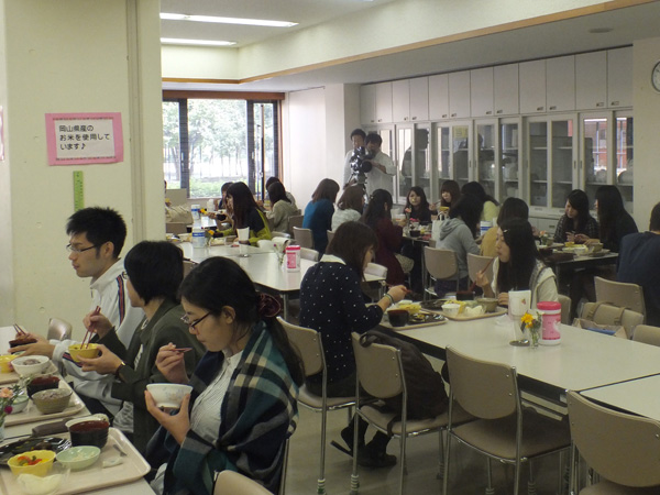 平成25年4月から新しく開講された授業で、自ら健康的な食事や食生活をデザインし、実践できるようになるための食に関する意識の高揚と健康増進を図ることを目的としています。毎週火・木曜日の12:00~13:30に営業しており、多くの学生や教職員で賑わっています。