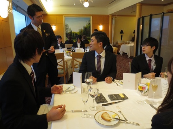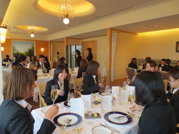 1月17日(金)株式会社ホテルグランヴィア岡山19階プリドールにおいて、本学食文化学部栄養学科1年生83名がフランス料理における食事作法(テーブルマナー)と文化を学ぶ実習を行いました。