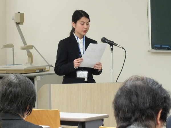 実習は2月初旬、11名が5日間、保育園や特別養護老人ホームなど11施設で行いました。実習で学んだ内容を施設ごとの発表テーマに基づいて、教員・学生・実習先でお世話になった先生方に報告発表しました。