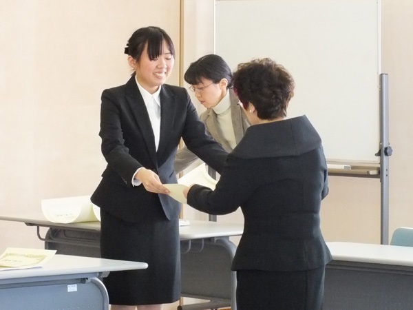 3月12日(木)本学1号館において、平成26年度家庭料理技能検定を優秀な成績で合格した現代食文化学科の学生6名に、学校法人香川栄養学園より優秀賞・優良賞が授与され、表彰状が贈られました。