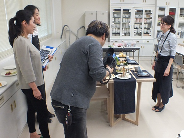 フードコーディネートコースの創作メニュー・デザイン実習が、地元雑誌の取材撮影を受けました