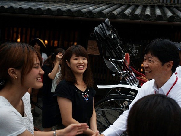 倉敷美観地区の知事会プレイベントで、岡山県知事とともに4知事を本学学生がおもてなし