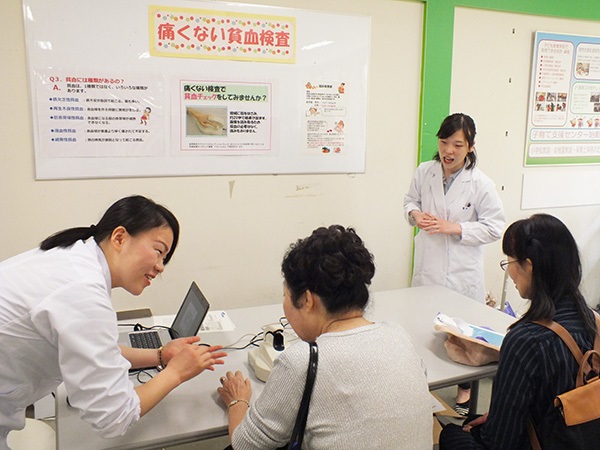貧血検査・骨密度指数・体脂肪率などを計測できる「ヘルスチェック測定」体験や、本学食文化学部 柳井玲子教授による「健康な食事とは」をテーマにした講演「ヘルスセミナー」を行いました。