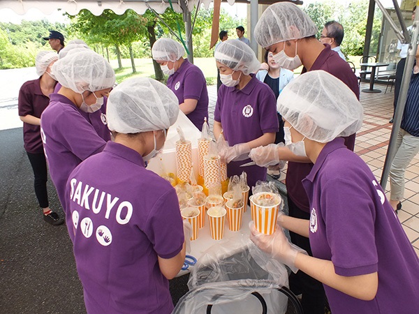 災害時を想定し、食支援が必要な方への展開食や栄養管理を行うことができる備蓄食材を、食文化学部現代食文化学科の3学生47名が考案し、地域の方々、本学学生・教職員を対象に学生の運営による炊き出しシミュレーションを行いました。