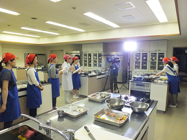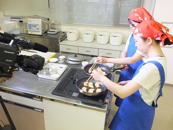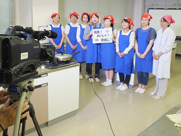 6月28日(火)本学5号館調理実習室において、玉島テレビ放送番組「SAKUYOクッキング」の収録が行われました。