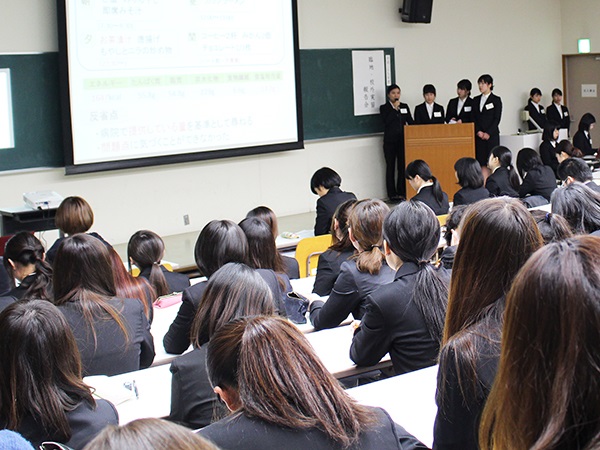平成30年1月9日(火)本学6号館において、食文化学部 栄養学科3年生による「平成29年度 臨地校外実習(臨床栄養学、給食経営管理、公衆栄養学)報告会」を行いました。