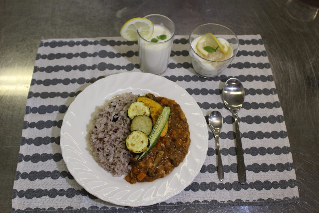 第2回は小上ゼミの4年生が考案した「夏野菜とさば缶の無水カレー」「甘酒ヨーグルト」「甘酒ラッシー」を紹介しました。暑い夏にぴったりの3品で栄養も満点です!