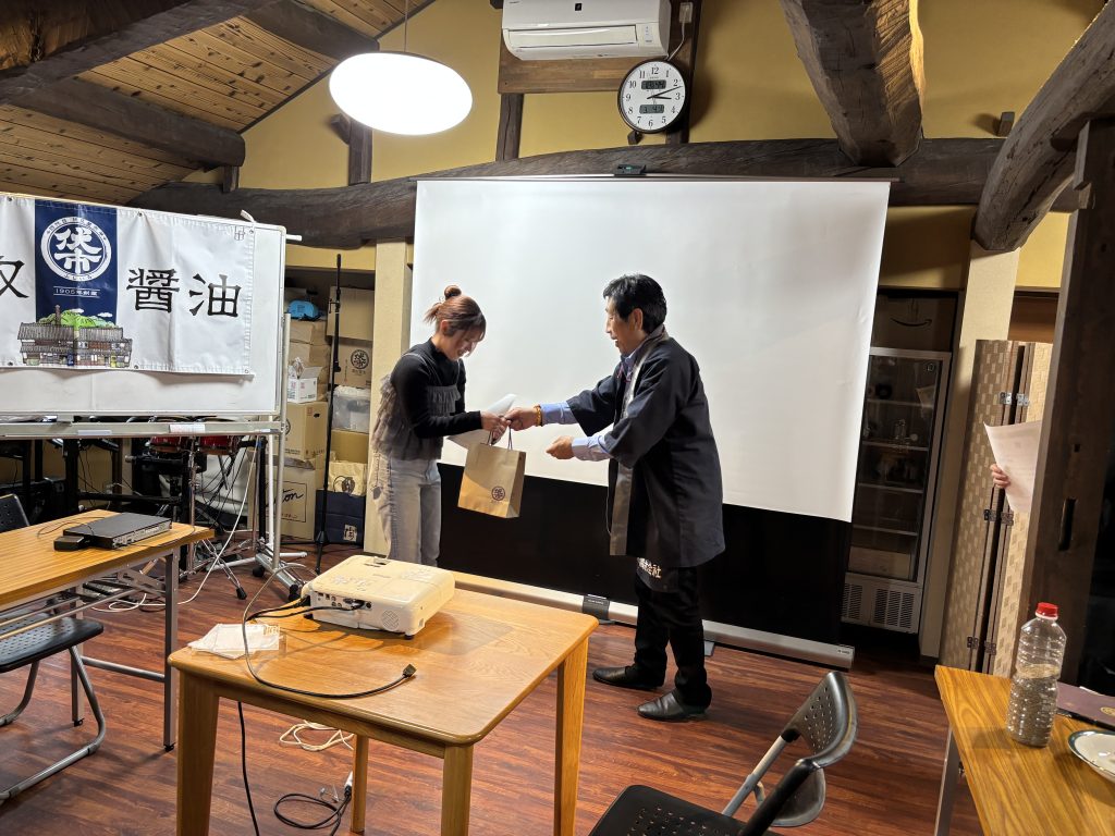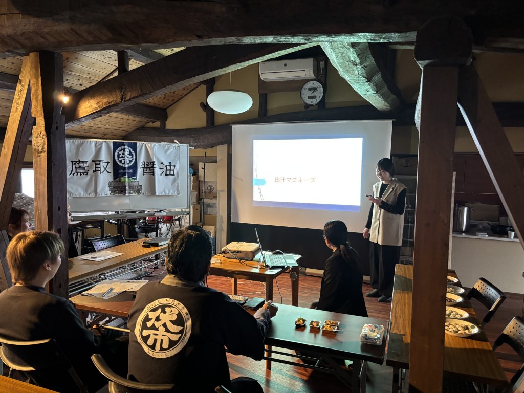 鷹取醤油の社長が作ってくださったランチをいただき、午後からは学生がそれぞれのレシピのプレゼンを行いました。
