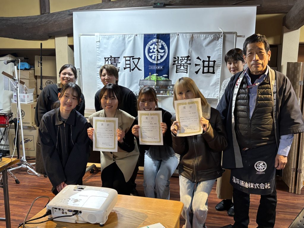 食文化学部の学生が、レシピ(6品)提案しました。その中から鷹取醤油様に選抜された3品を、3/4日(火)鷹取醤油様へお邪魔して、プレゼンをさせていただきました。