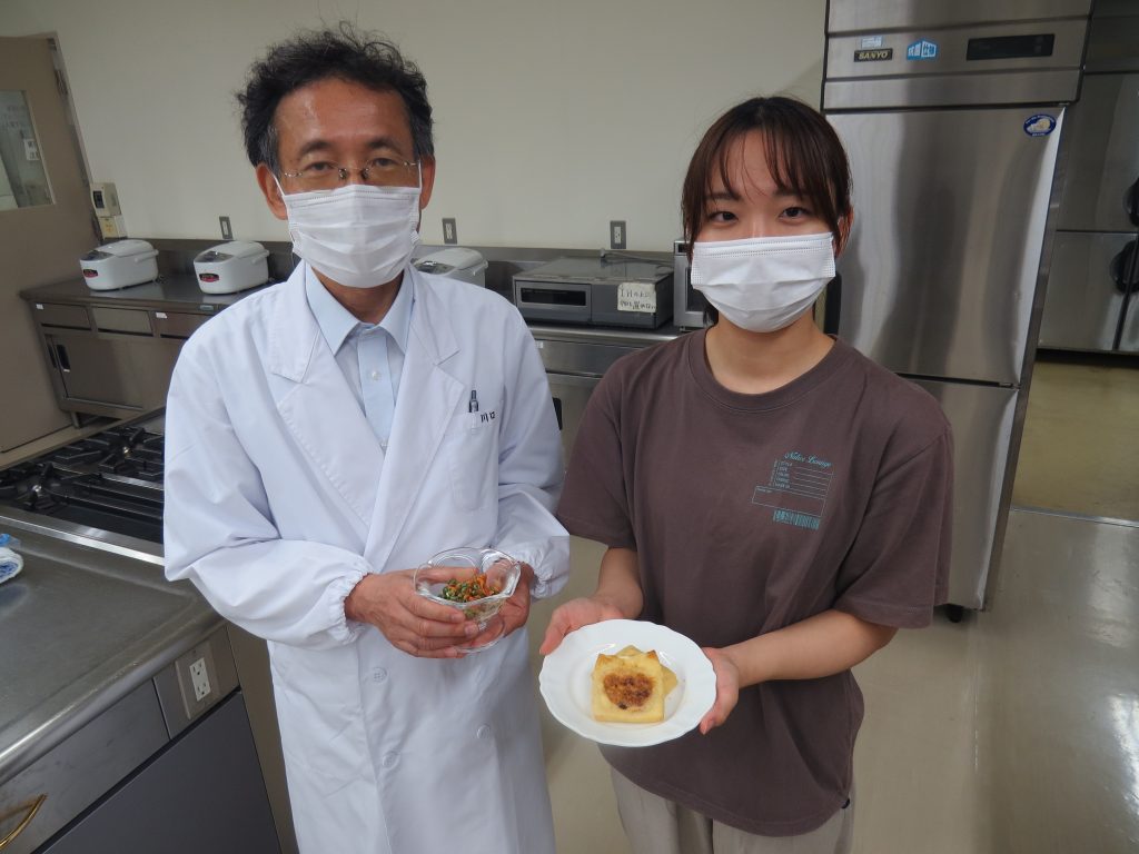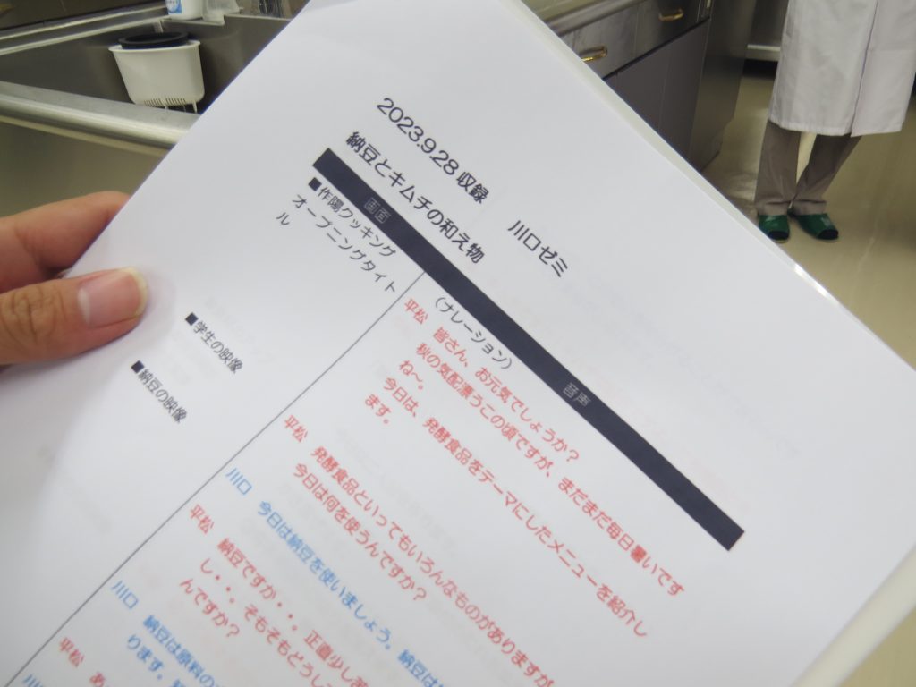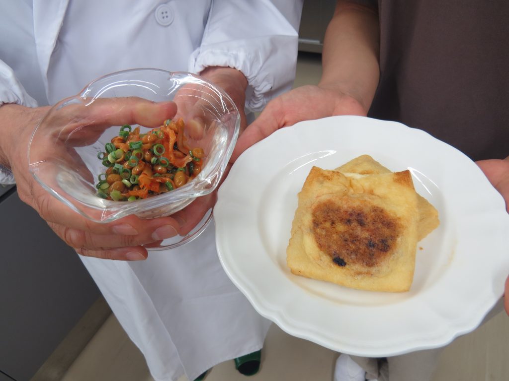 家族みんなで!簡単、おいしく、健康に!をテーマに、10月号は川口先生とゼミの学生で企画した『発酵食品を活用したレシピ』です。”納豆とキムチの和え物&チーズinお揚げの焼物”でした。
