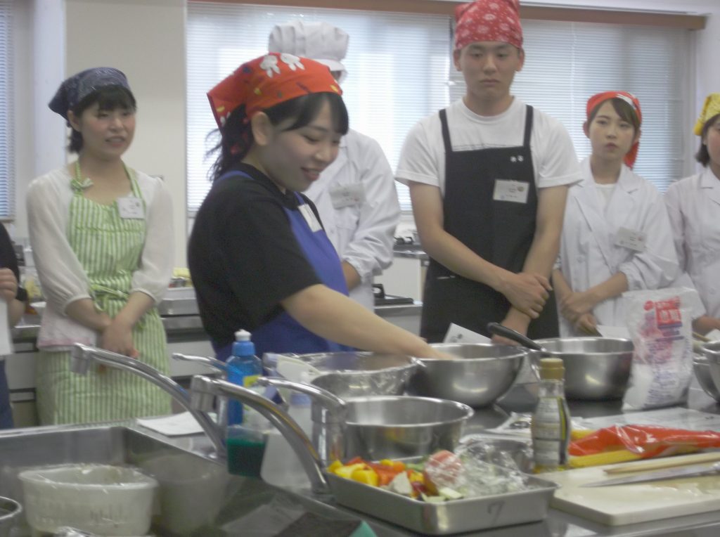 - 今回は食文化学部、子ども教育学部の1年生から4年生まで29名の参加があり、男子学生も多く楽しい料理教室となりました。