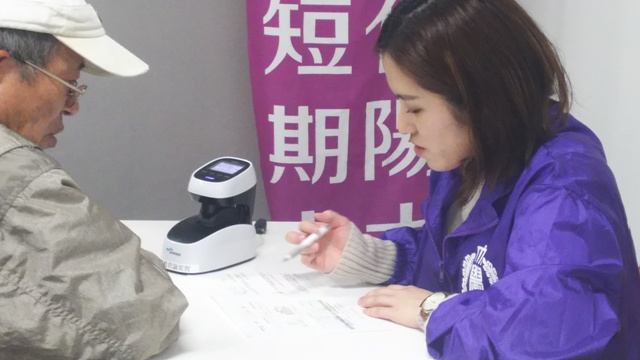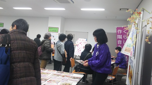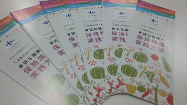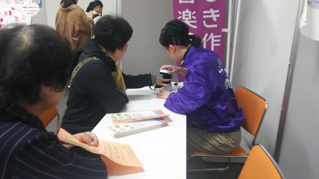 くらしき作陽大学コーナーでは貧血検査・一次予防についてリーフレットを配布し一次予防の重要性を説明・参考に500kcal台のレシピを配布。