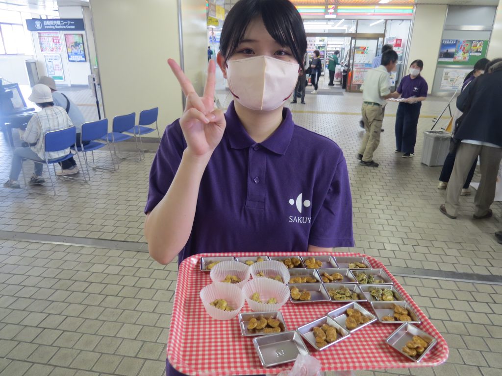 2023.06.16 くらしき作陽大学食文化学部現代食文化学科 JR新倉敷駅イベントで「そら豆ちゃん」を紹介