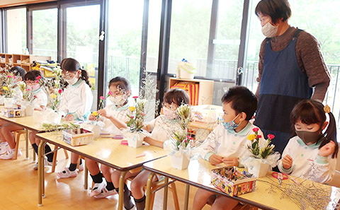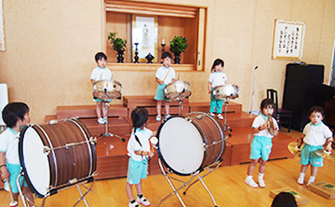 - 4歳児クラス…リトミック、ヴァイオリン、音楽(鍵盤ハーモニカ、リズム打ちなど)、 華道