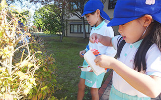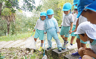 自然を楽しみ、自然と遊び、自然から学ぶ喜びが体験できる遊びや、身近な動植物とのかかわりを通して、子ども達の自然環境への興味関心を高めると共に、豊かな学び、豊かな感性を育んでいます。
