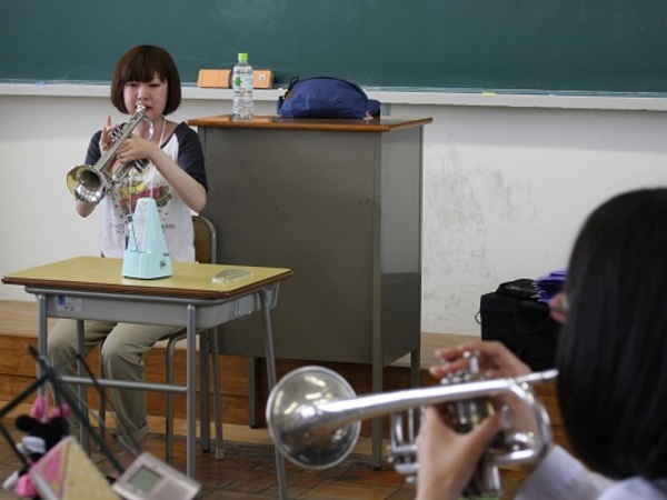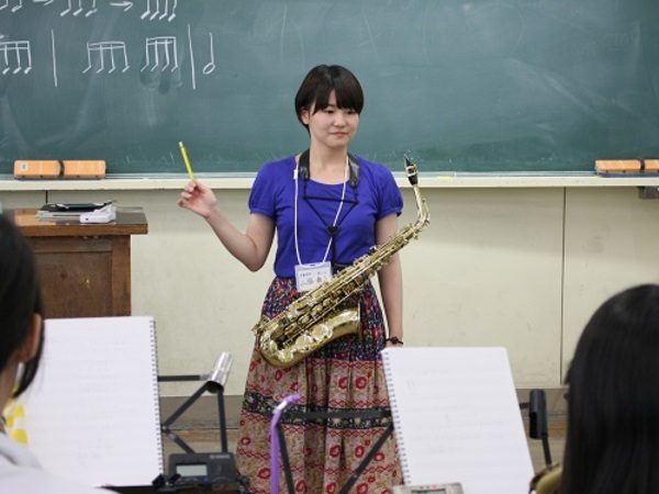 当日は香川県吹奏楽連盟に所属する中学生、高校生約500名が参加し、本学教員、在学生、卒業生が基礎練習、デイリートレーニング、演奏方法の応用や簡単な楽器メンテナンスの方法など丁寧に指導しました。