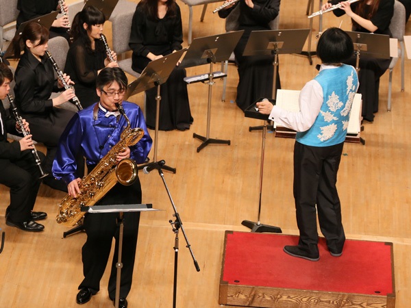 第二部は、作曲家・ピアニスト・舞台音楽家として、幅広くご活躍されている宮川彬良氏を指揮にお招きし、『Fun,Fun,fantastico!』『組曲「宇宙戦艦ヤマト」』『ファイブ・サックス・コンチェルト「見上げてごらん夜の星を」』『吹奏楽のためのソナタ「ブラック・ジャック」』などの演奏と、華麗なトークで満員の聴衆を魅了しました。
