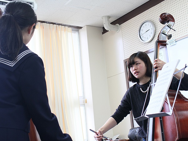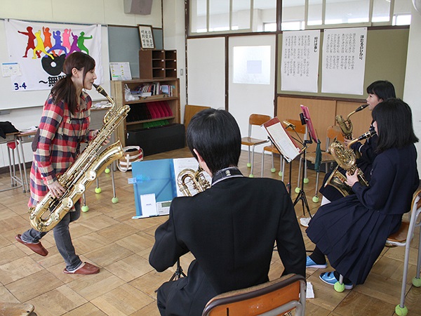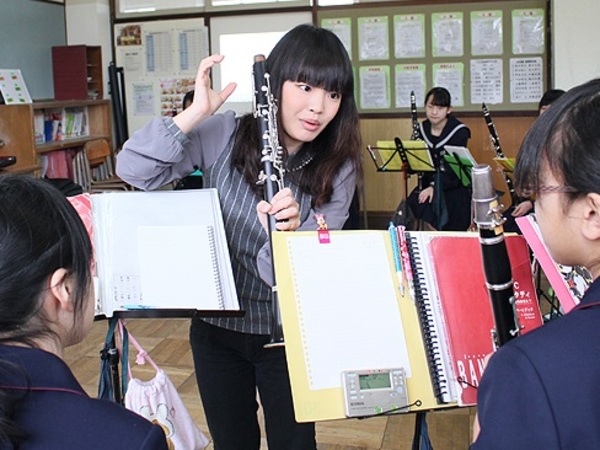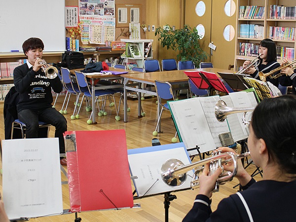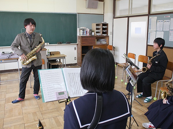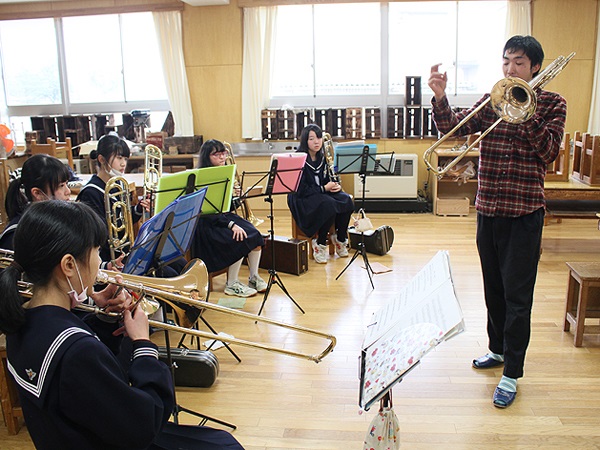 当日は鳥取県吹奏楽連盟(西部)に所属する中学生、高校生まで約300名が参加し、本学教員、在学生、卒業生が基礎練習、デイリートレーニング、演奏方法の応用や簡単な楽器メンテナンスの方法など丁寧に指導しました。
