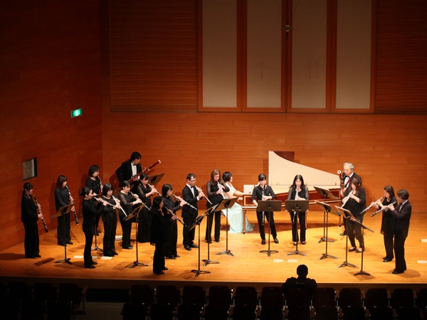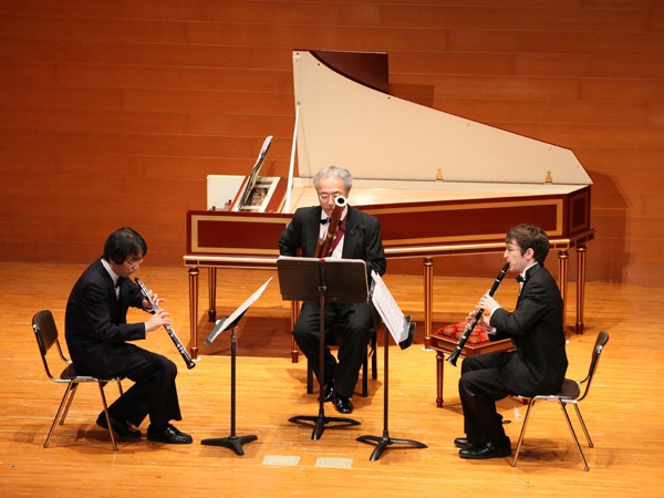 菅付章宏 准教授(Ob.)の豊かな経験に裏打ちされた音楽性と指導力は、菅付先生の誠実な人柄と相まって多くの音楽関係者から広く人望を集めています。この演奏会では、本学の講師陣から長瀬敏和(Cond.)、森博文(Hr.)、居川寛子(Cemb.)、Timothy Carter(Cl.)、またともに青春時代を過ごした菊池保 氏(Fg.)とともに、「音の対話」で展開する魅惑の世界を披露しました。