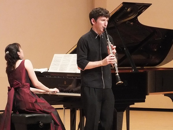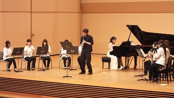 F.ショパンの幻想即興曲をはじめ、ティモシー・カーター講師によって多彩な作品がクラリネットとピアノのための作品として披露されました。また、土居里江准教授(Pf.)のピアノソロや、G.ロッシーニ作曲の歌劇では9名の学生がアンサンブルに加わり、コンサートを盛り上げました。