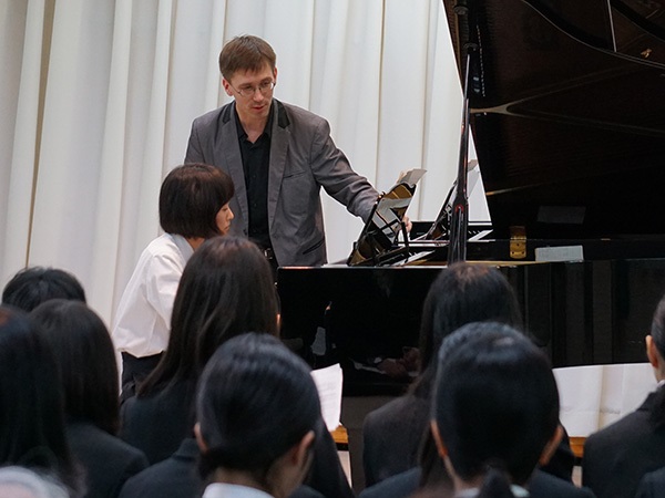 12月6日(日)にモスクワ音楽院特別演奏コース ヴァチェスラフ・グリャズノフ特任講師が、高知県立高知丸の内高等学校を訪問しミニコンサートと公開レッスンを行いました。