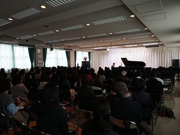 生徒さんと一般の方に、ベートーヴェンの「ソナタ」とグリャズノフ先生自ら編曲した「牧神の午後への前奏曲」をミニコンサートで披露し、2名の生徒さんが公開レッスンを受講されました。