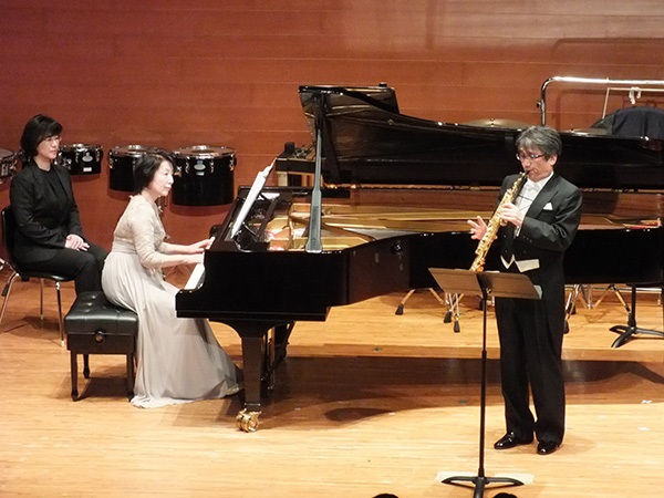 第1部 ~ジャズに影響を受けた作品たち~ では重利和徳 講師(Pf.)と、第2部 ~サクソフォン meets エレクトーン~ では赤松英彦 准教授(El.)と長瀬敏和 教授(Sax.)の豪華な饗宴を繰り広げ、美しい音で空間が満たされました。