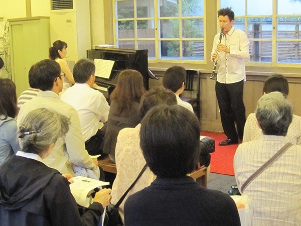この日の出演は本学音楽学部ティモシー・カーター講師(Cla.)と土居里江准教授(Pf.)によるスペシャルコンサートで、開演前には本学吉田副学長より来場された皆さまに御礼挨拶をさせていただきました。