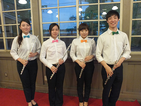 初日の出演はフルート四重奏で、コンサートに訪れた多くのお客様にクラシックからポップス・歌謡曲など、聴き馴染みのある曲を中心にお楽しみいただきました。