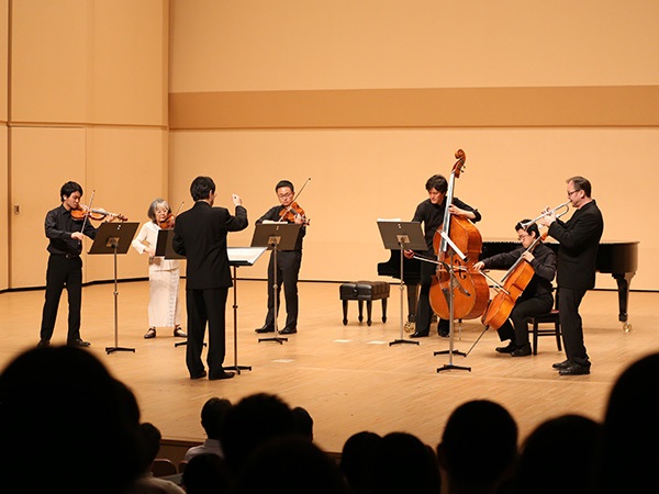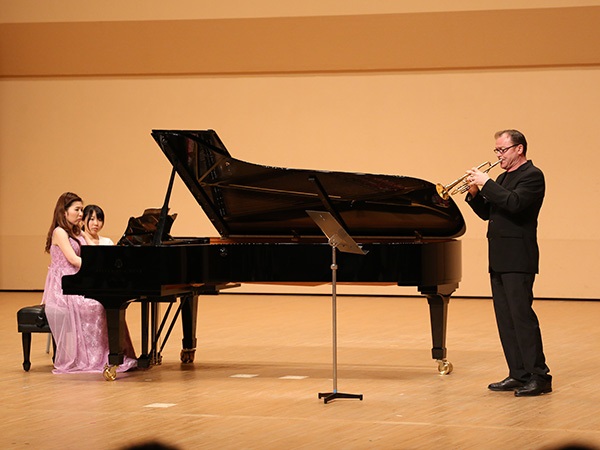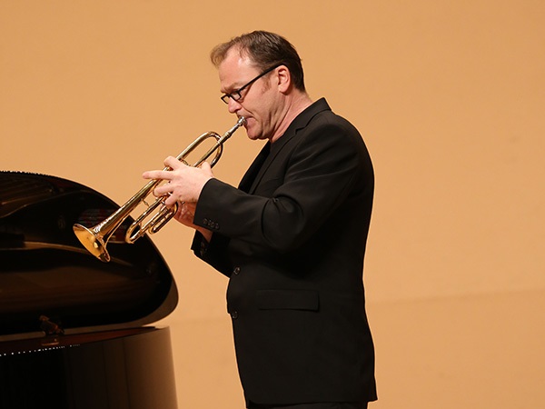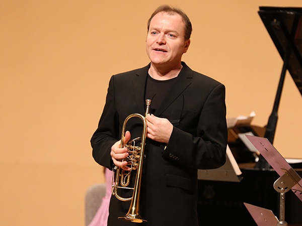 ベルリン・フィル首席トランペット奏者で本学客員教授である、ガボール・タルケヴィ氏による難解さを微塵も感じさせない超絶技巧と格調高い音の連なりを披露し、聴衆を魅了しました。また、本学学生とも共演し、学生は技術だけでなく氏の音楽に対する真摯な姿勢を学ぶことができました。
