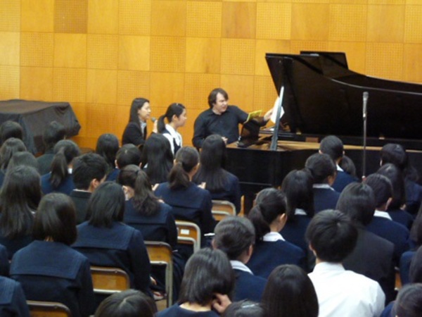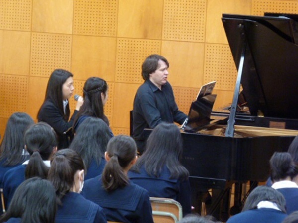 4月28日(金)にモスクワ音楽院特別演奏コース デニス・チェファーノフ特任准教授が、兵庫県立西宮高等学校を訪問しミニコンサートと公開レッスンを行いました。