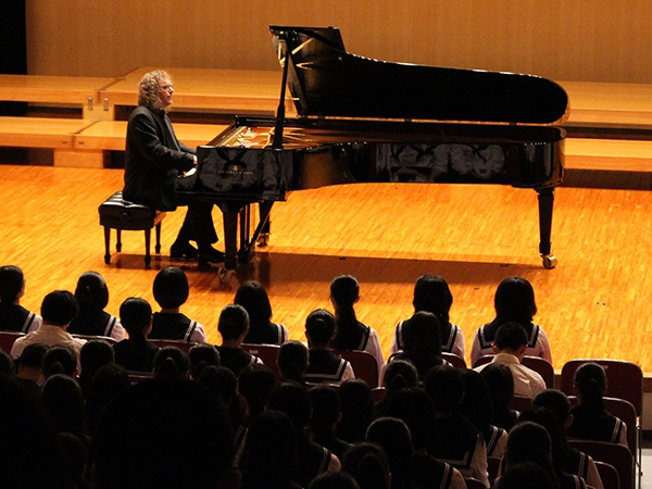 7月6日(木)に音楽学部 音楽学科 モスクワ音楽院特別演奏コースのアレクサンドル・ヴェルシーニン特任教授が、香川県立坂出高等学校を訪問し、ピアノリサイタルと公開レッスンを行いました。