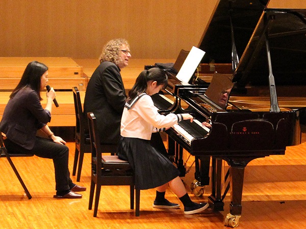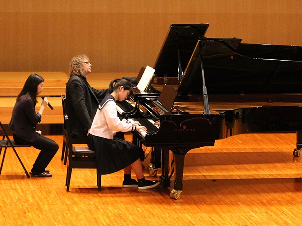 音楽科の生徒さんと一般の方に、ベートーヴェン/ソナタ第14番 嬰ハ短調 作品27-2「月光」、グリンカ/バラキレフ/ひばり、チャイコフスキー/四季より 11月「トロイカで」、ラフマニノフ/前奏曲 嬰ハ短調 作品3-2をピアノリサイタルで披露し、2名の生徒さんが公開レッスンを受講されました。