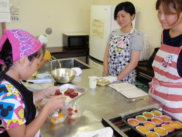 8月23日(土)福田南公民館 2階 調理実習室において、本学ボランティア部による「かんたん(^∀^)お菓子づくり」を開催しました。 小学生と保護者・ご家族を対象に、マドレーヌやフルーツポンチなど楽しく作って食べるお菓子づくりを体験していただきました!