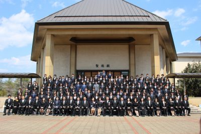 松田学長による式辞では、「学問を修得し、それぞれの資格を取得すれば社会に出て活躍できる人になれますが、それだけでは十分ではありません。大学生活の中で、自分とはいかなる存在なのか、どのような生き方が最善の生き方なのかを学び、実践してほしいと思います。人生は唯一であり、誰にも真似できない一度きりのものです。一日一日を充実した一日にする。徹底して学修する。その積み重ねが力になり、将来の人生を意義深いものにします。周りに感謝し、社会に役立つ人になり、自分の人間性を高めていく、そのような人になって欲しいと願っています」と歓迎の言葉が贈られました。